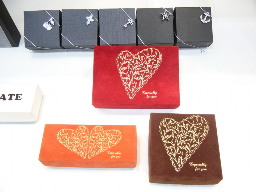 金箔押しをしたベルベット風の紙で作成した高級感のある貼箱です。
